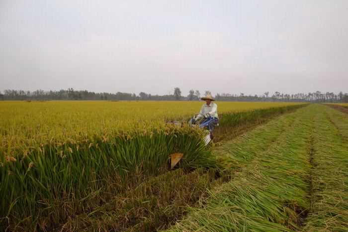 大圹圩农场:水稻割晒拉开序幕