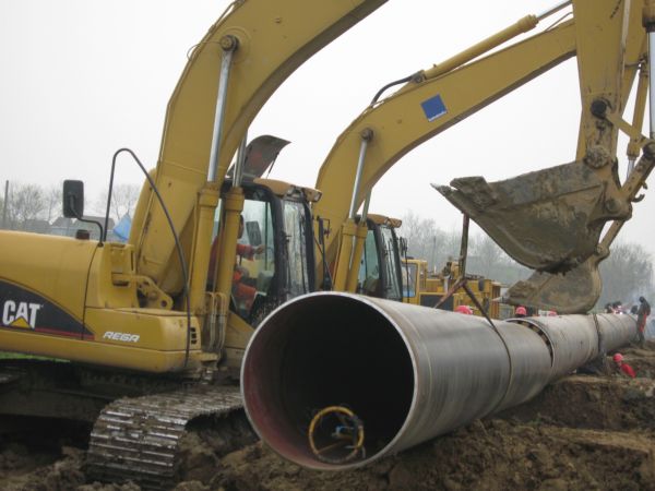 3月18日,“川气东送”工程安庆皖河农场施工段,工程技术人员正在运装天然气管道。“川气东送”天然气管道工程是经国务院核准的国家及中石化集团公司“十一五”规划重点工程,由中国武警总队水电部队及军民合作共建。管道全长2160公里,经过四川、重庆、湖北、安徽、江苏、浙江、上海等地,其中在皖河农场过境14.3公里,3月初动工,计划6月份完工。