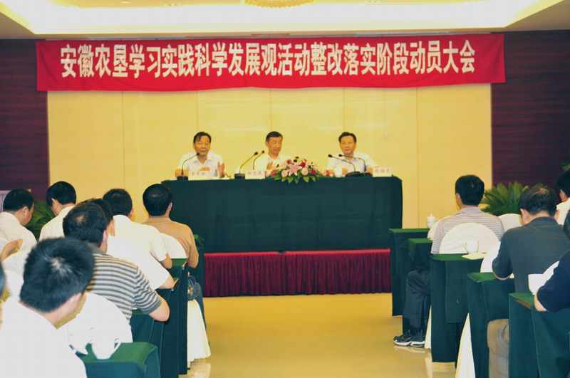 集团公司党委书记、董事长田文俊在动员报告中指出,第二阶段学习实践活动中,全系统把握精神实质,结合实际创新,圆满完成了分析检查阶段各项任务,这一阶段主要有 “紧抓学习不放松、真心查摆不动摇、诚恳剖析不保留、紧扣主题不松懈”五个特点,形成了“解放思想,扩大开放、加快一二三产业协调发展、培育农垦主导产业、继续改善民生”等安徽农垦科学发展的共识。对于第三阶段的工作,田书记提出了六点要求:一要深化学习、二要制订方案、三要多办实事、四要完善制度、五要搞好测评、六要加强领导,田书记希望两级学习实践活动办公室要继续做好宣传工作,进一步总结推广典型经验和先进事迹,加强正面引导,营造良好氛围,确保学习实践活动取得圆满成功,让上级党组织放心,让全垦区广大党员干部和职工群众满意。